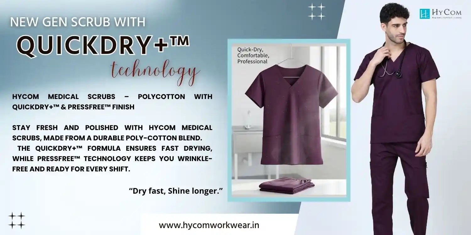 Finding a comfortable and long-lasting scrub dress is essential when working in a busy hospital environment. The BlendoSoft collection from Hycom Workwear is designed using premium poly-cotton fabric, offering lightweight comfort, wrinkle-less performance, and durable quality for both men and women in healthcare.