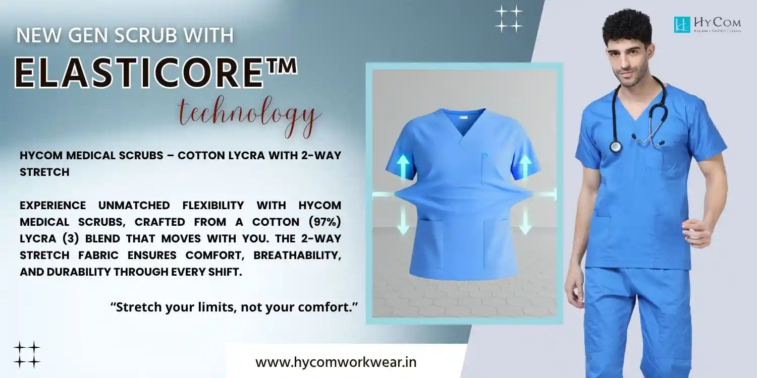 Long shifts, constant movement, and demanding hospital routines require scrubs that can keep up. Under the medical scrub clothing StretchOn collection from Hycom Workwear is made using a premium Cotton–Lycra blend, giving you truly stretchable scrubs that move with you, stay comfortable, and maintain a clean professional look throughout the day. Designed for both men and women, these scrubs offer flexibility without losing shape or durability.